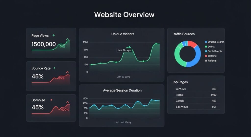 Quais são as principais métricas de um dashboard de site?